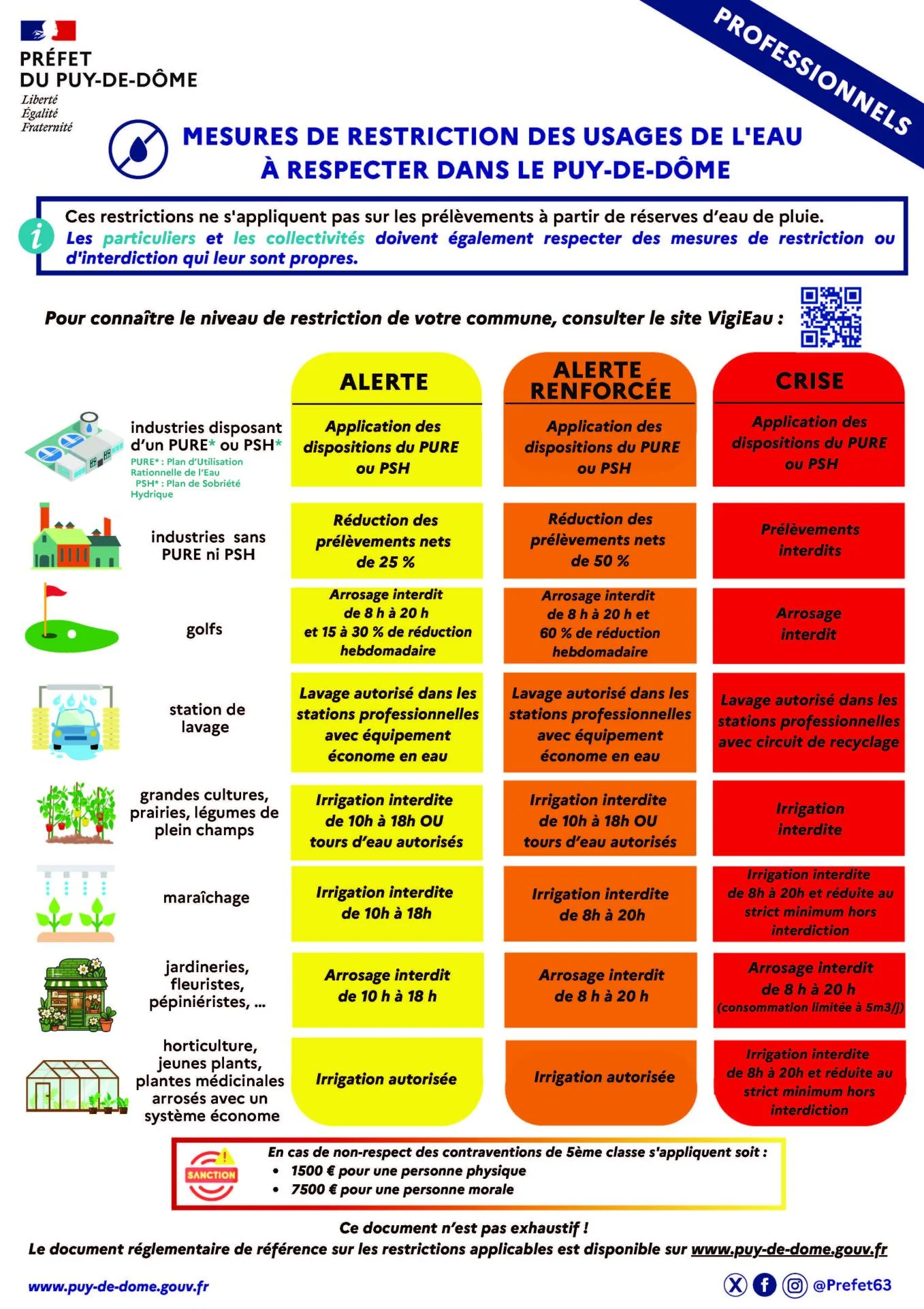 Le préfet signe régulièrement des arrêtés préfectoraux instaurant des mesures de restriction par zone hydrographique.